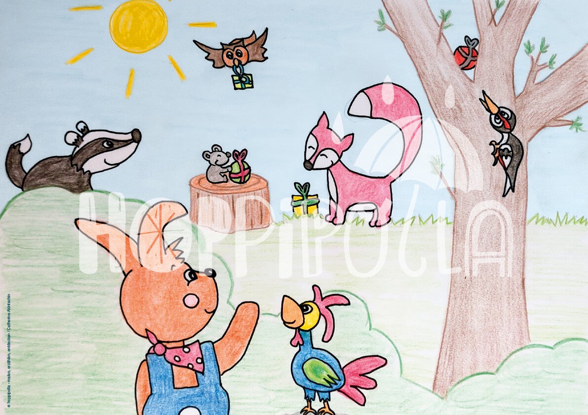 - Liebevoll handgezeichnete Kamishibai-Bilder, angelegt für Din A3 (kann beim Druck auch einfach auf A4 skaliert werden)