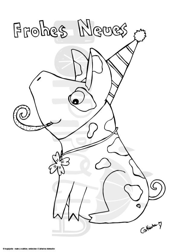 Ausmalbilder Silvester-Schweinchen - 4 Bilder zum Download